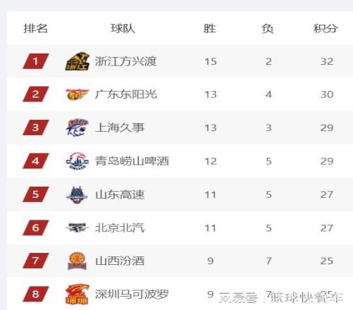 CBA积分榜最新排名出炉!广东反超上海杀回第2:辽篮跌至第11