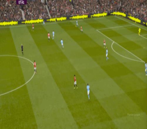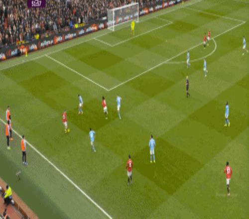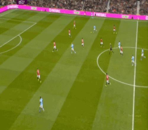 这也使得曼联在开场只有2分钟的时候,就用两次长球直打,直接进入了曼城的禁区线空间内: